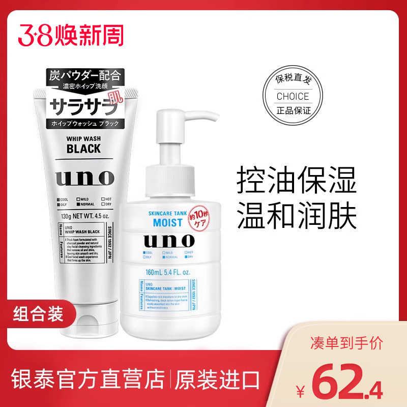 吾诺UNO洗面奶男士清爽控油补水面霜面部保湿滋润不油腻护肤正品