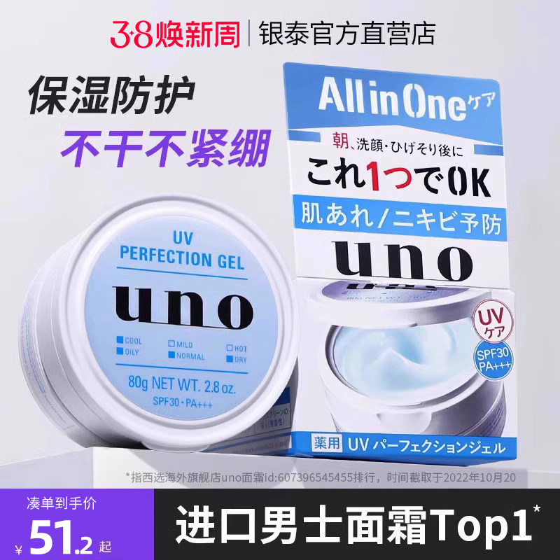 新款 日本吾诺UNO男士多效防晒凝露80g男士面霜清爽控油保湿