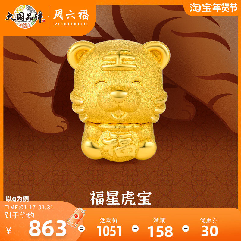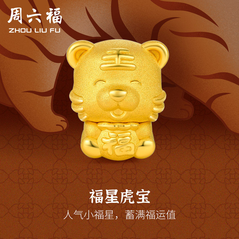 周六福珠宝黄金手链男女3D硬金福星虎宝抱福转运珠本命年生肖手饰