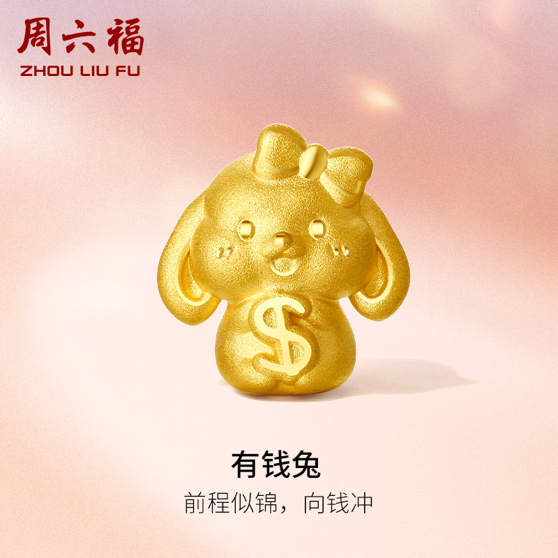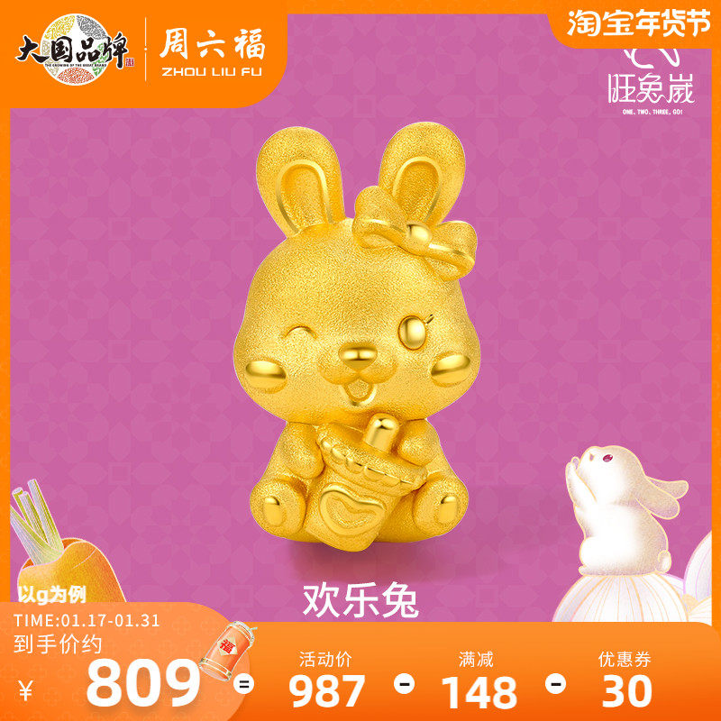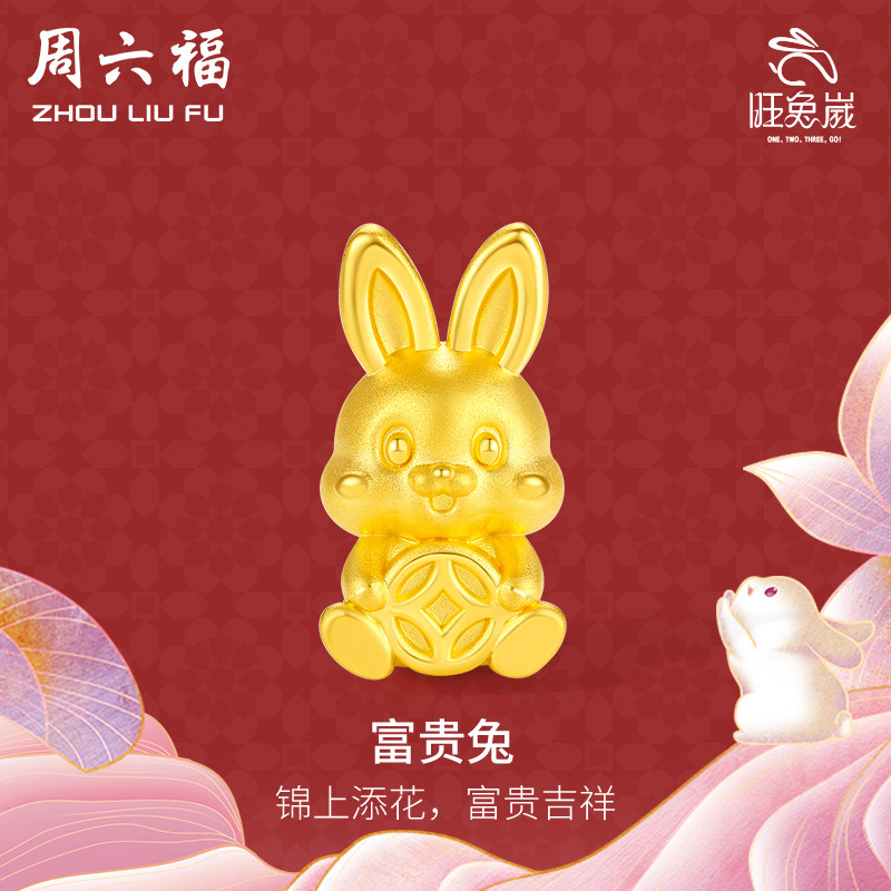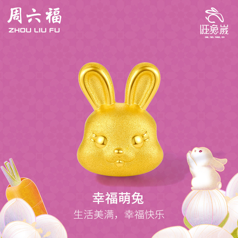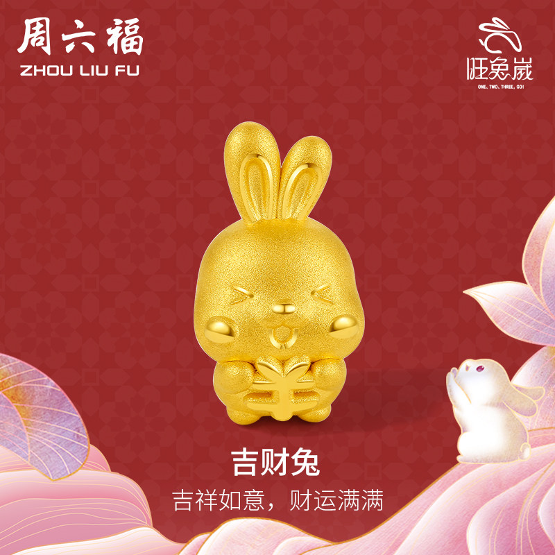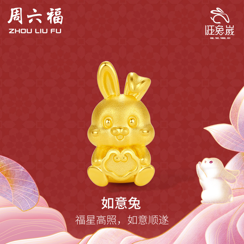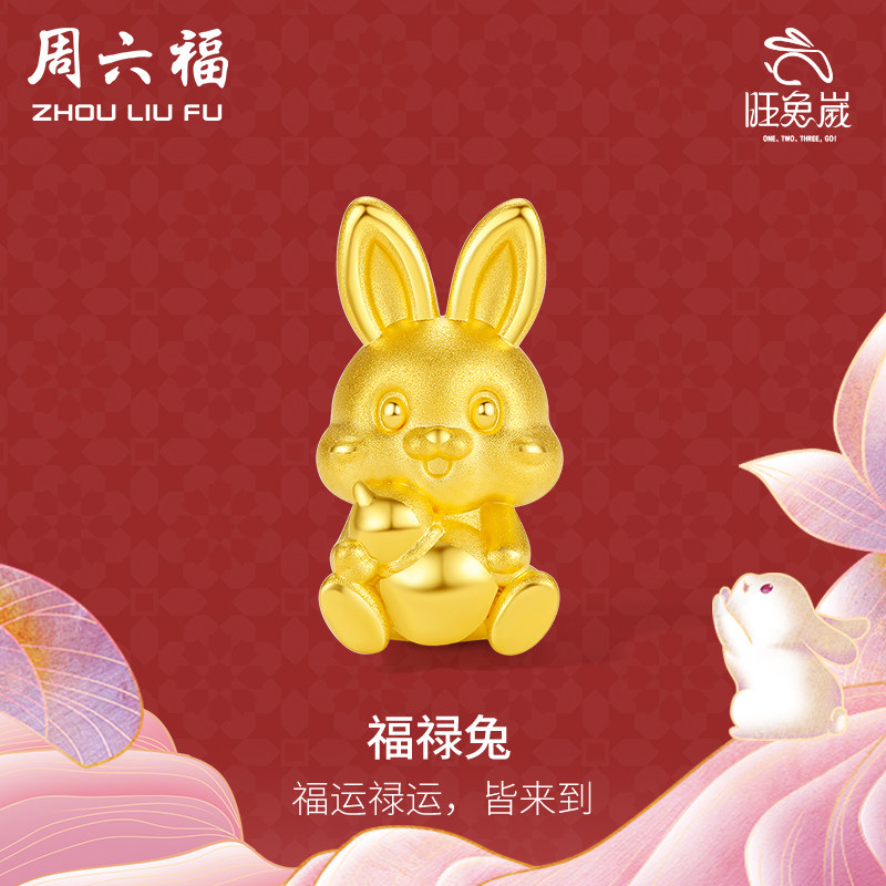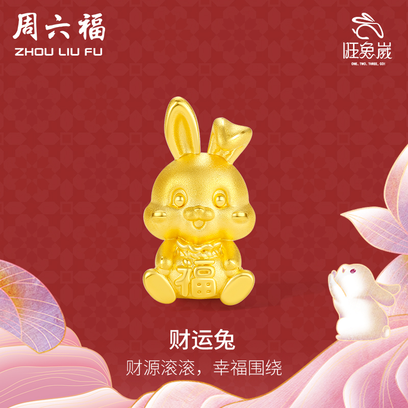 周六福黄金转运珠兔子手绳女定价足金三合生肖本命年手链新年礼物