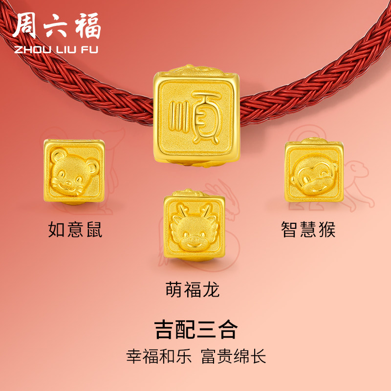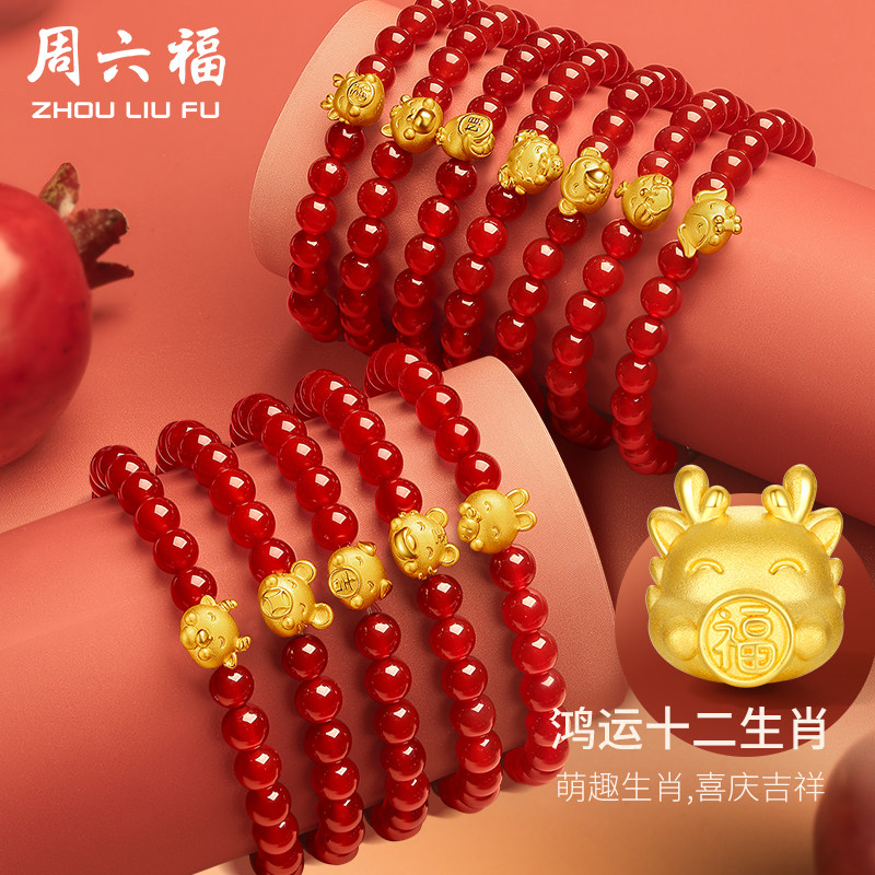 周六福黄金手串手链定价十二生肖龙年本命年珠宝串珠足金新年礼物
