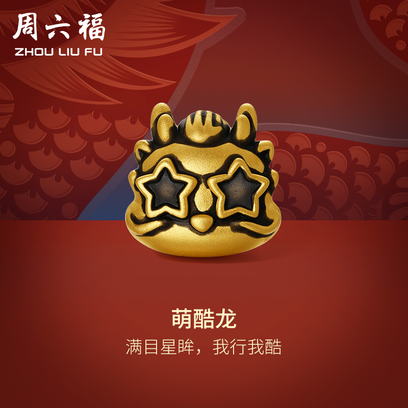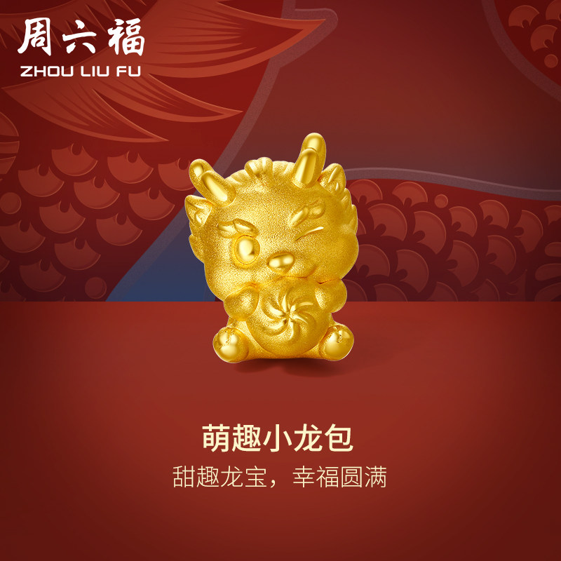 周六福黄金转运珠俏皮龙宝足金本命年生肖龙手绳手链定价新年礼物