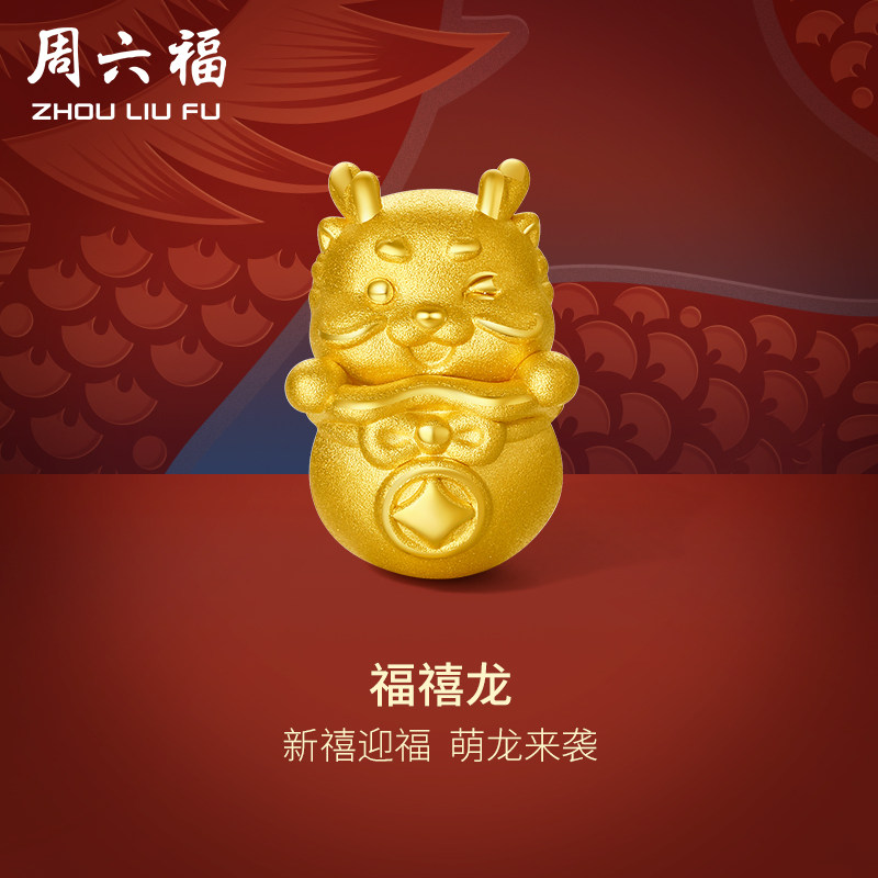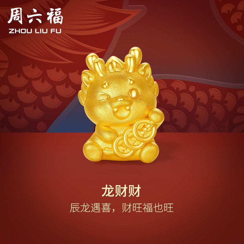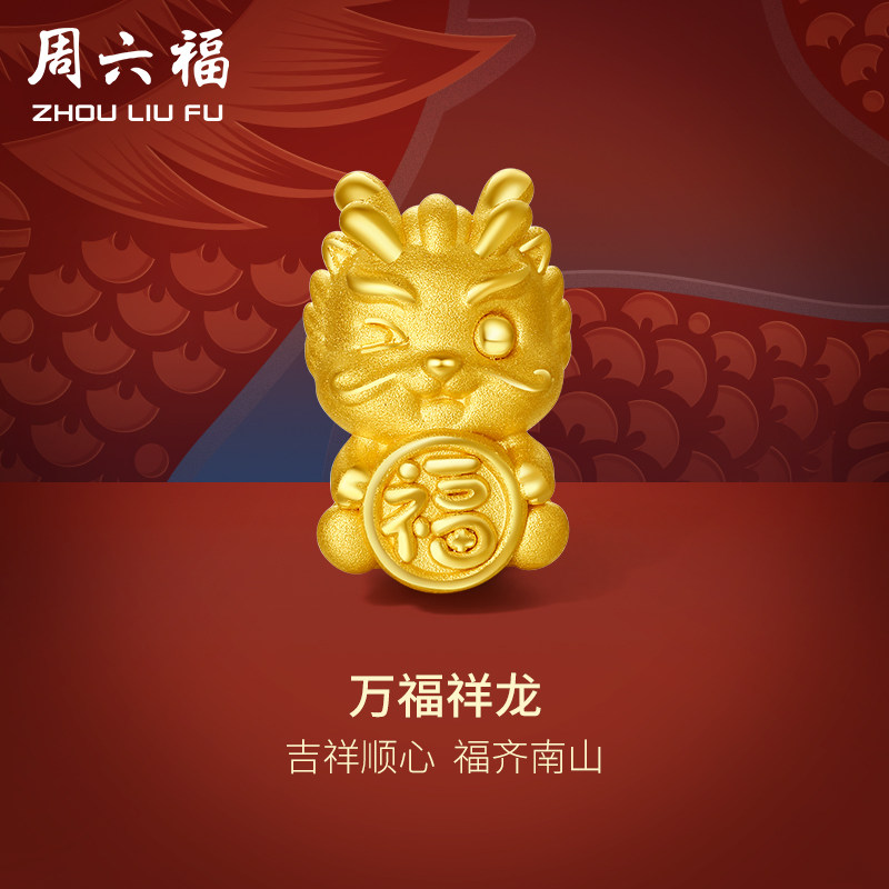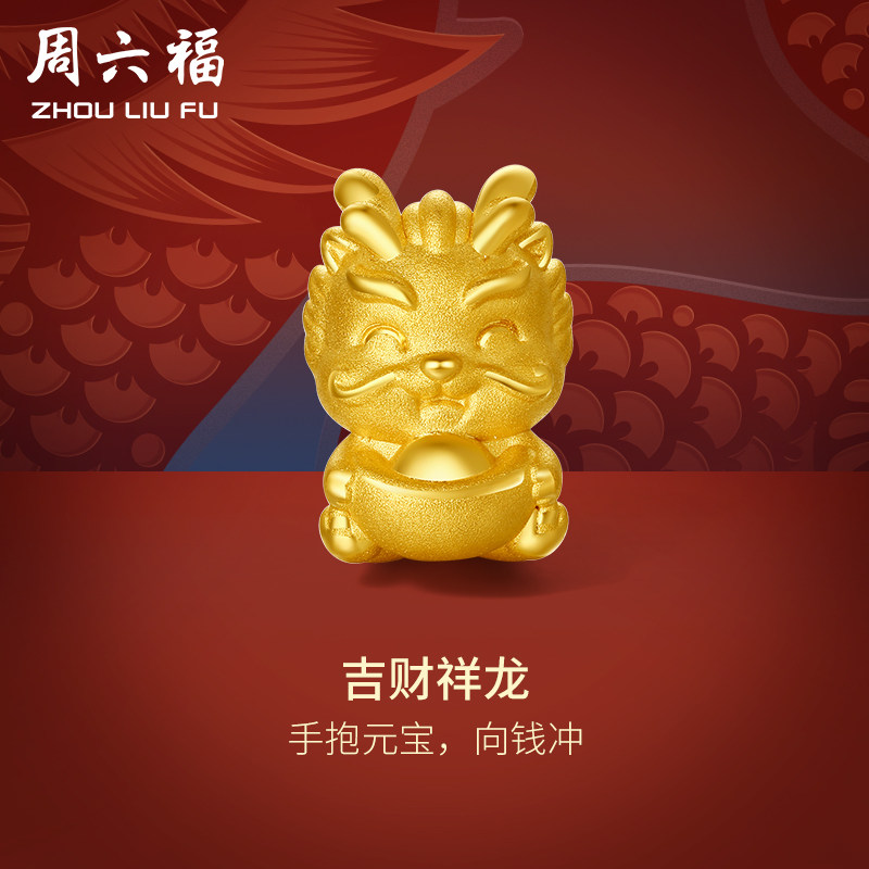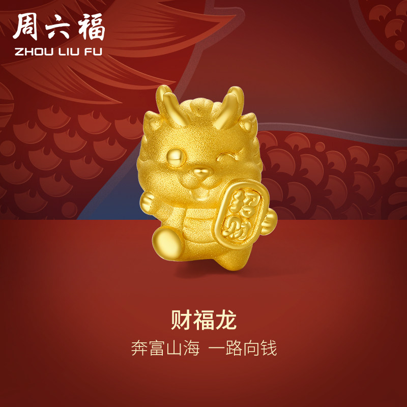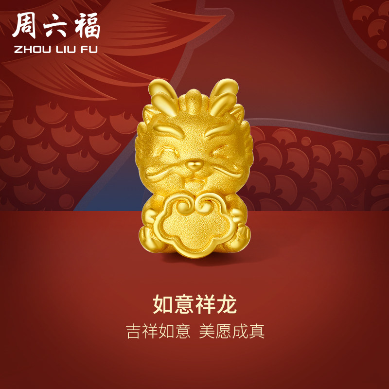 周六福黄金转运珠福财龙足金本命年生肖手绳手链定价新年礼物