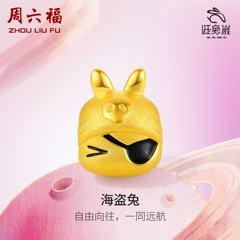 周六福黄金转运珠手绳定价海盗兔手链本命年生肖兔手串新年礼物
