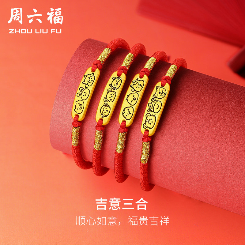 周六福黄金手链女定价十二生肖送宝宝足金兔年本命年红绳龙年新年