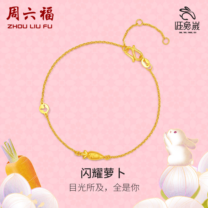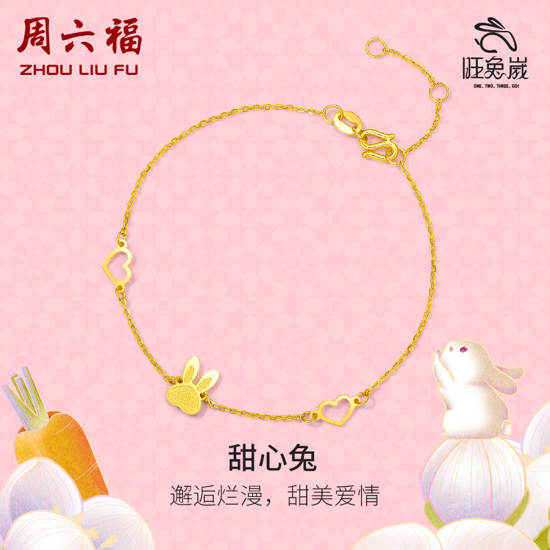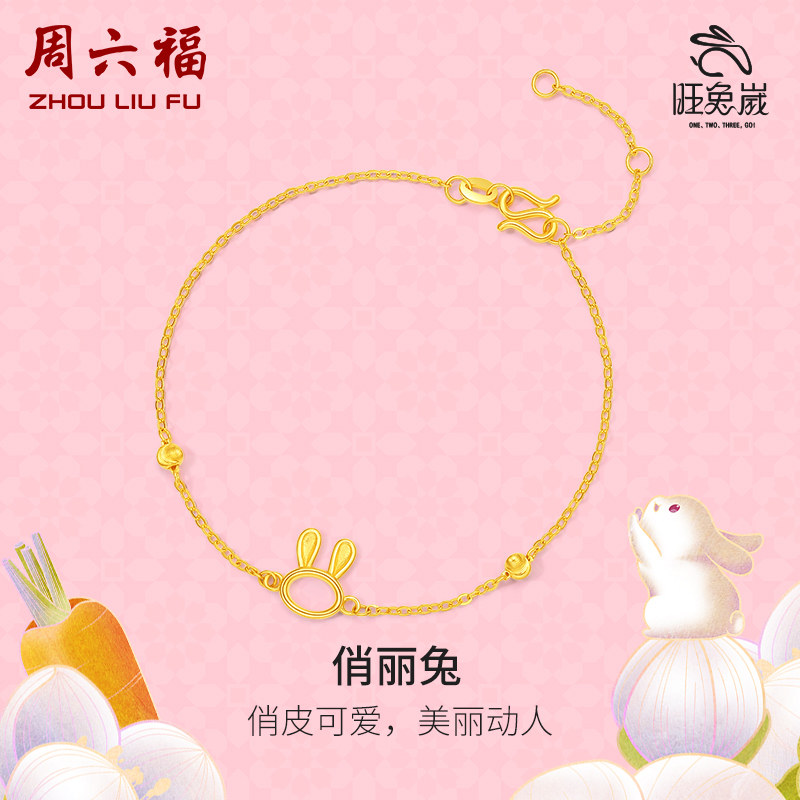 周六福黄金手链女款计价足金俏皮兔本命生肖兔5G金手饰新年礼物