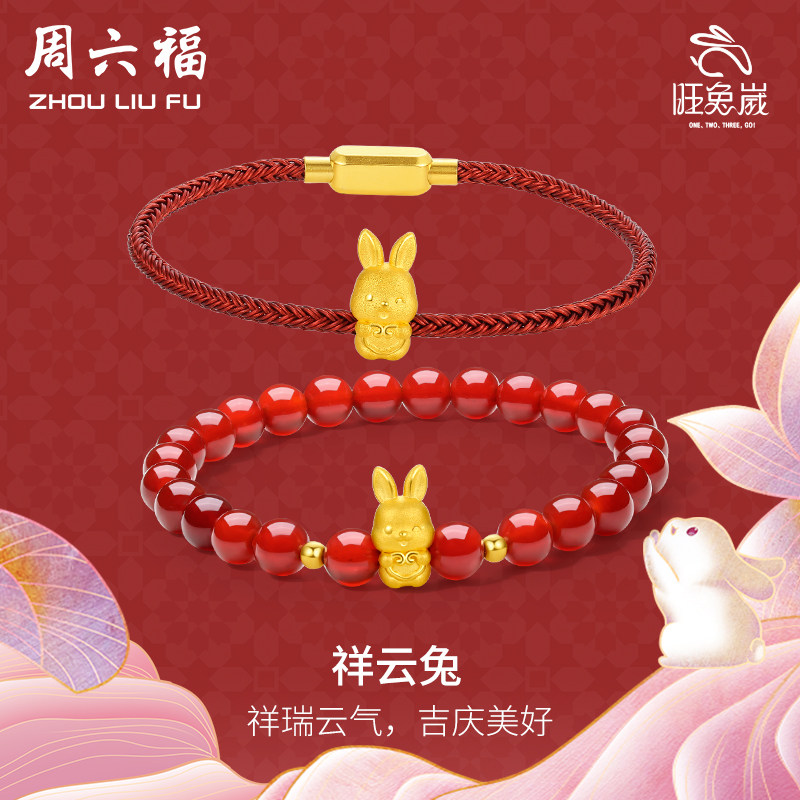 周六福珠宝黄金转运珠手链女定价欢乐兔手串生肖兔本命年手绳手饰