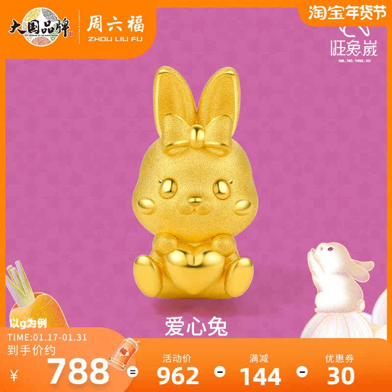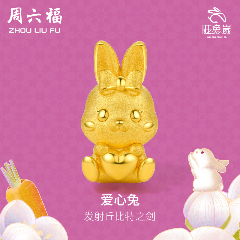 周六福珠宝黄金转运珠手绳女款爱心兔手链定价本命年生肖金兔手饰