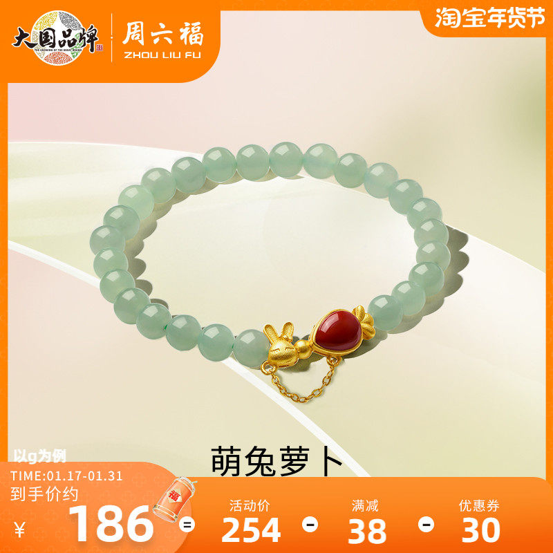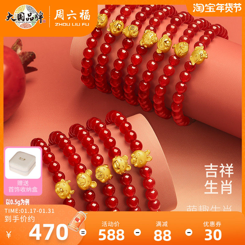 周六福珠宝黄金手链定价十二吉祥生肖兔年本命年玛瑙手串足金手饰