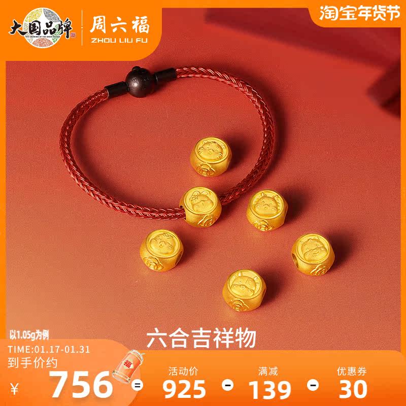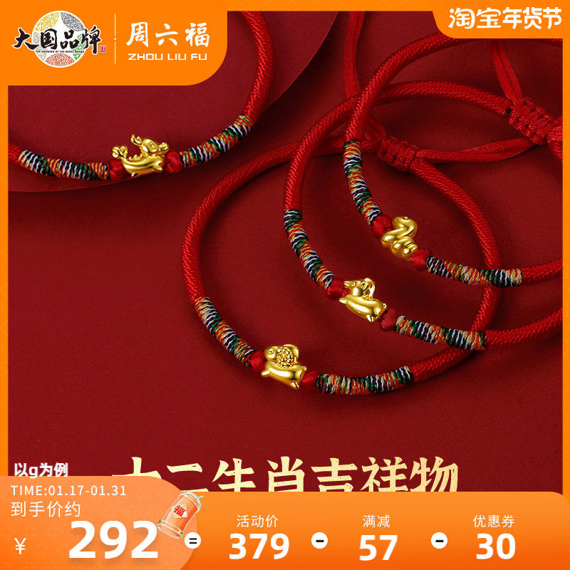 周六福黄金转运珠六合十二生肖本命年定价龙兔红手绳手链新年礼物