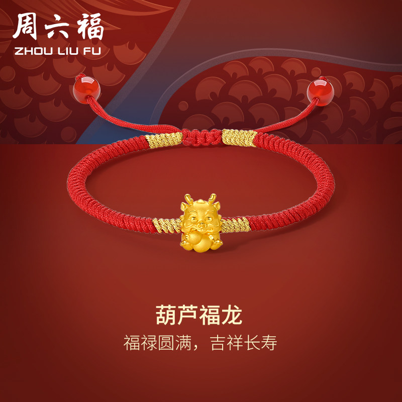 周六福黄金转运珠福泽龙足金本命年生肖龙红手绳手链定价新年礼物