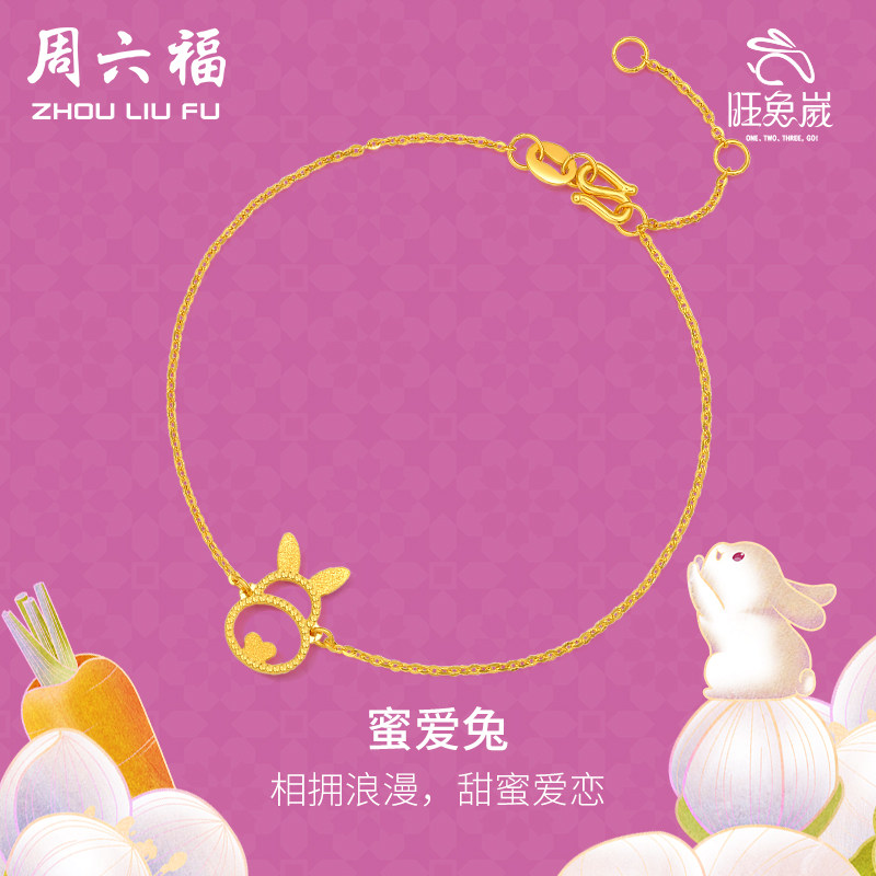 周六福黄金手链女款计价足金密爱兔本命生肖兔手饰手串新年礼物