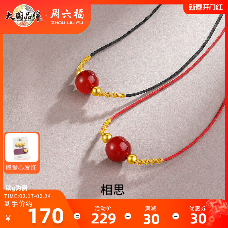 周六福珠宝项链吊坠3D硬金小金珠红玛瑙挂坠送女友颈饰官方集市店