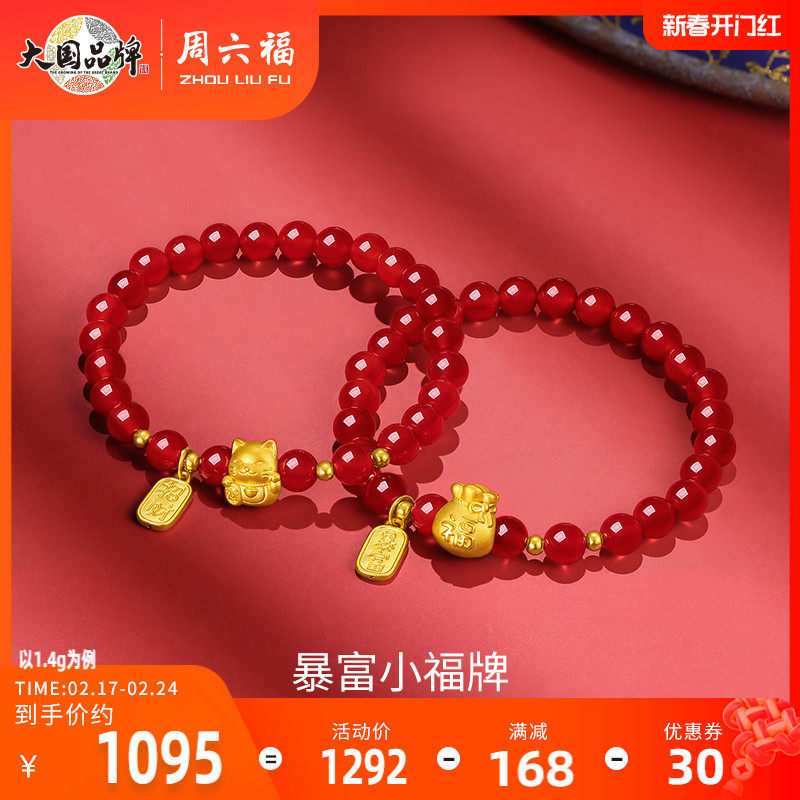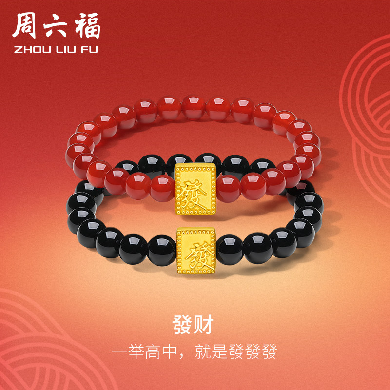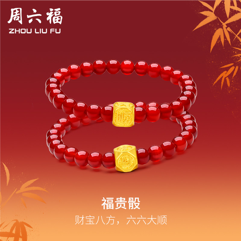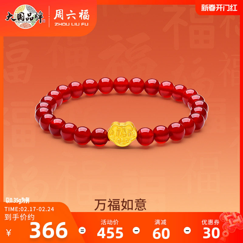 周六福黄金手串福牌福袋手链定价玛瑙转运珠手饰串珠足金节日礼物