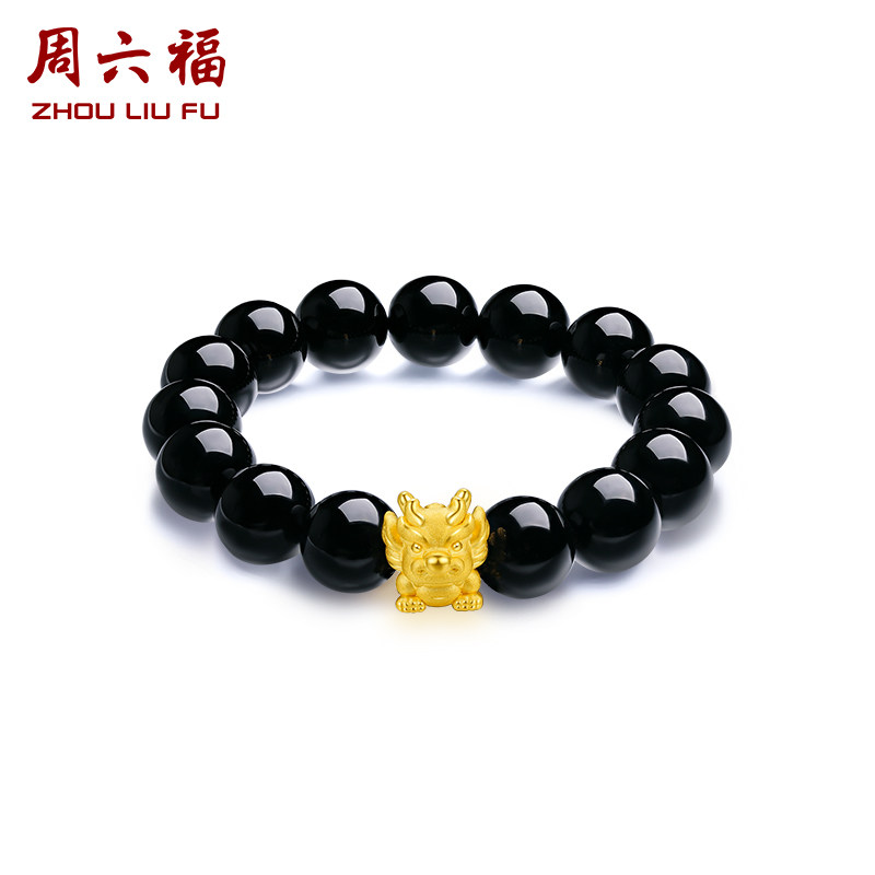 周六福黄金手串腾龙转运珠手链男足金玛瑙串珠定价男士新年礼物