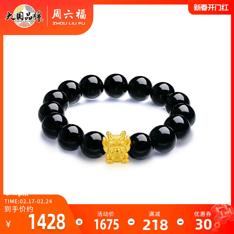 预售周六福黄金手串腾龙转运珠手链男足金玛瑙串珠定价情人节礼物