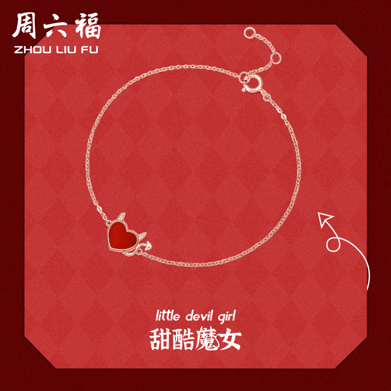 周六福18K金钻石手链女小魔女玛瑙爱心璀璨官方天然真钻珠宝手饰
