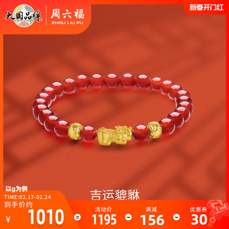 周六福黄金手串新女貔貅转运珠手链足金玛瑙串珠定价情人节礼物