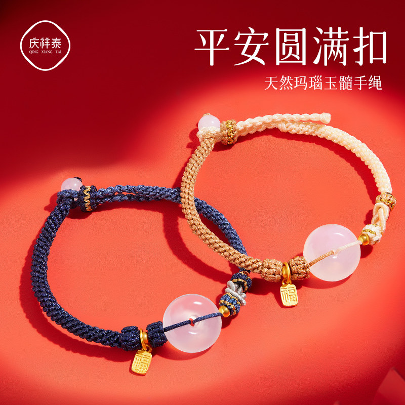 周六福金镶玉手绳女款玛瑙玉髓平安扣手链手饰官方正品情人节礼物
