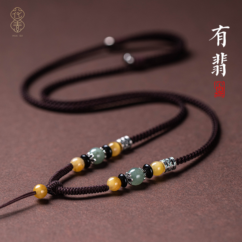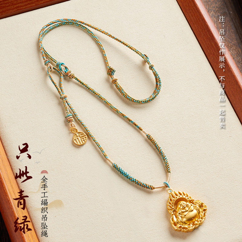 千里江山手编吊坠挂件绳八宝罗盘翡翠玉佩黄金平安扣项链绳细款女