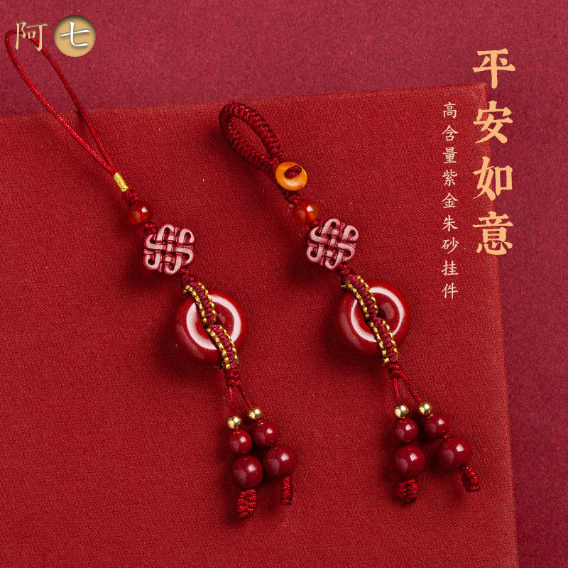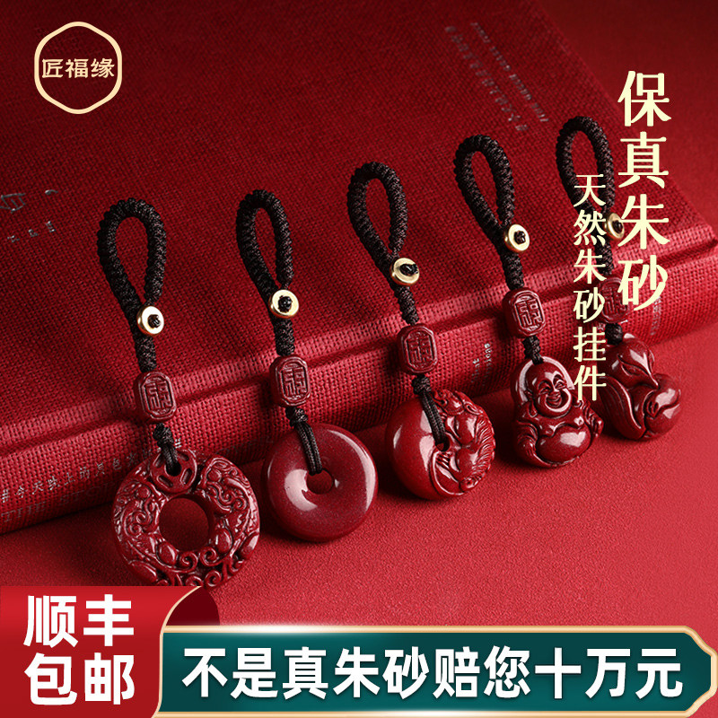 天然朱砂吊坠平安符手机坠钥匙扣挂件精致男女款官方正品旗舰店