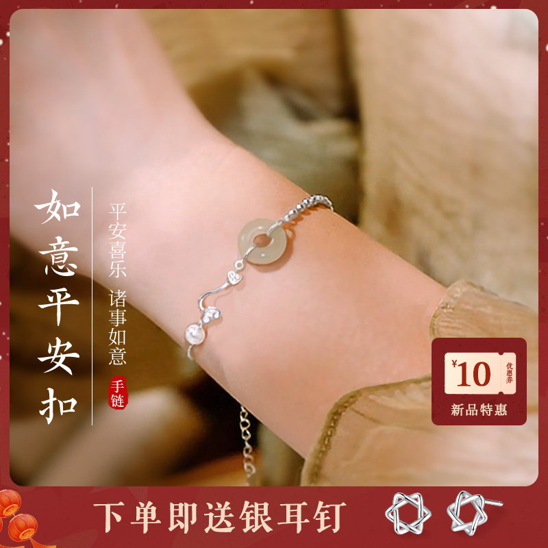新中式平安扣玉石手链女夏ins小众设计感高级手串2022年新款手饰