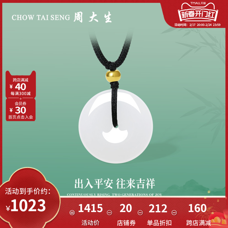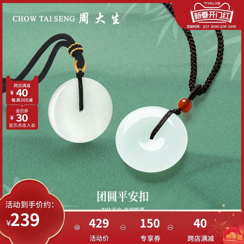 周大生和田玉平安扣吊坠白玉石项链情侣款挂坠玉佩玉坠送女友礼物