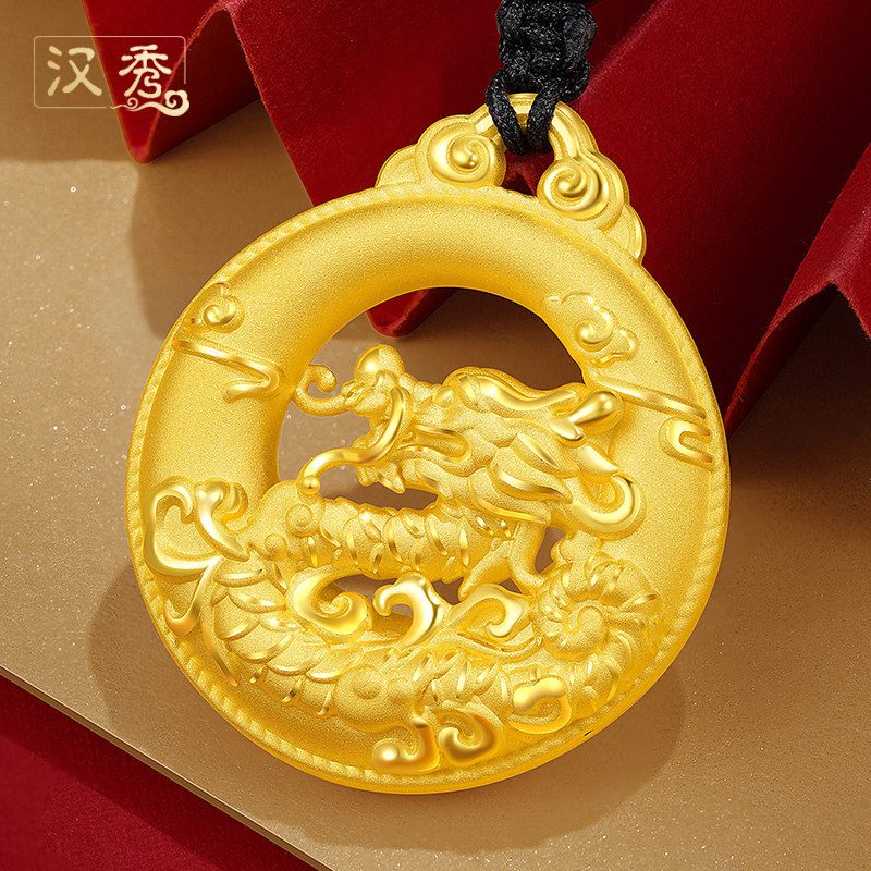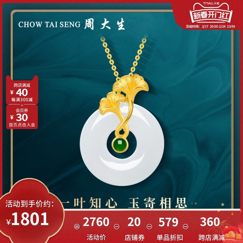 周大生黄金镶玉吊坠女和田碧玉龙凤平安扣挂坠送妈妈女友生日礼物