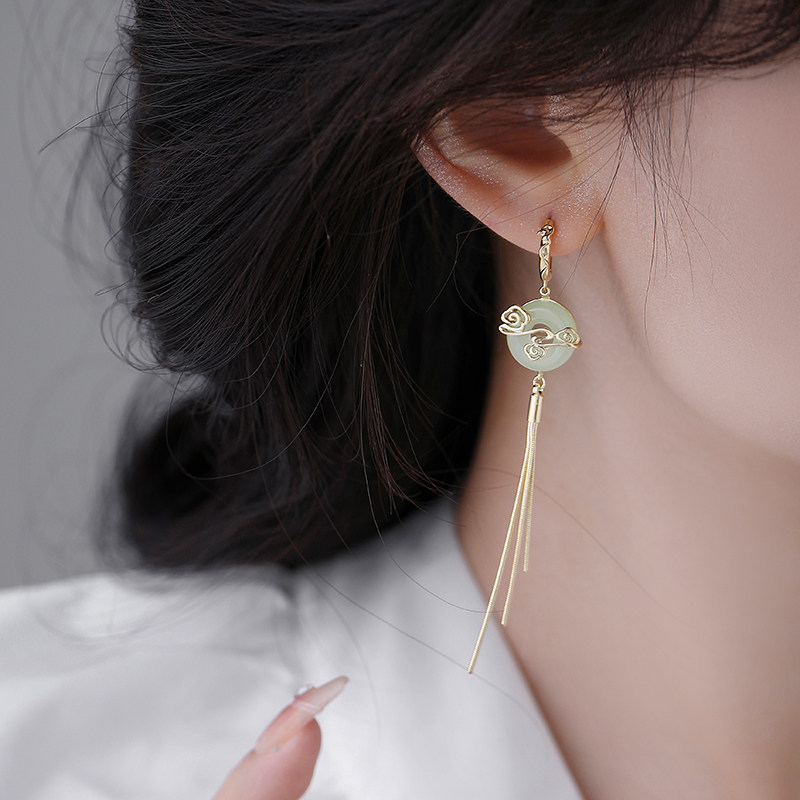 中国风平安扣耳扣气质中长款百搭耳环流苏耳坠民族风高级感耳饰品