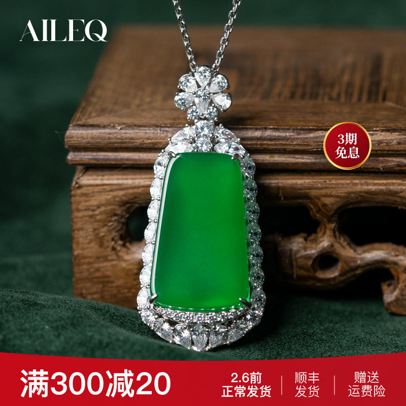 AILEQ无事牌纯银绿玉髓玛瑙项链玉石吊坠玉坠平安扣媲美翡翠新款