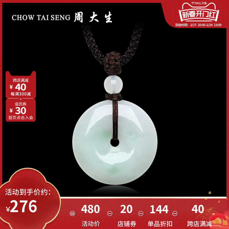 周大生天然翡翠项链女净瓶观音吊坠平安扣玉坠子情侣款送男友礼物