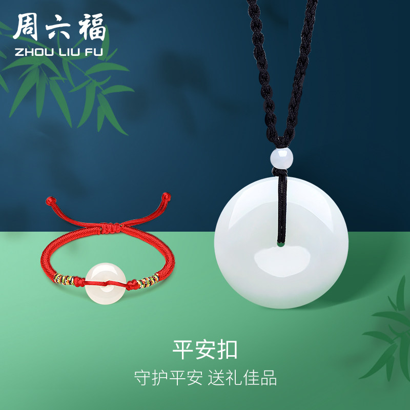 周六福和田玉吊坠平安扣玉坠项链玉石白玉挂坠男女款情人节礼物