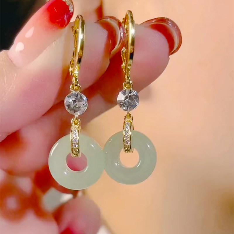 新款古风平安扣玉石耳环气质长款设计百搭耳扣耳坠复古宫廷轻奢耳