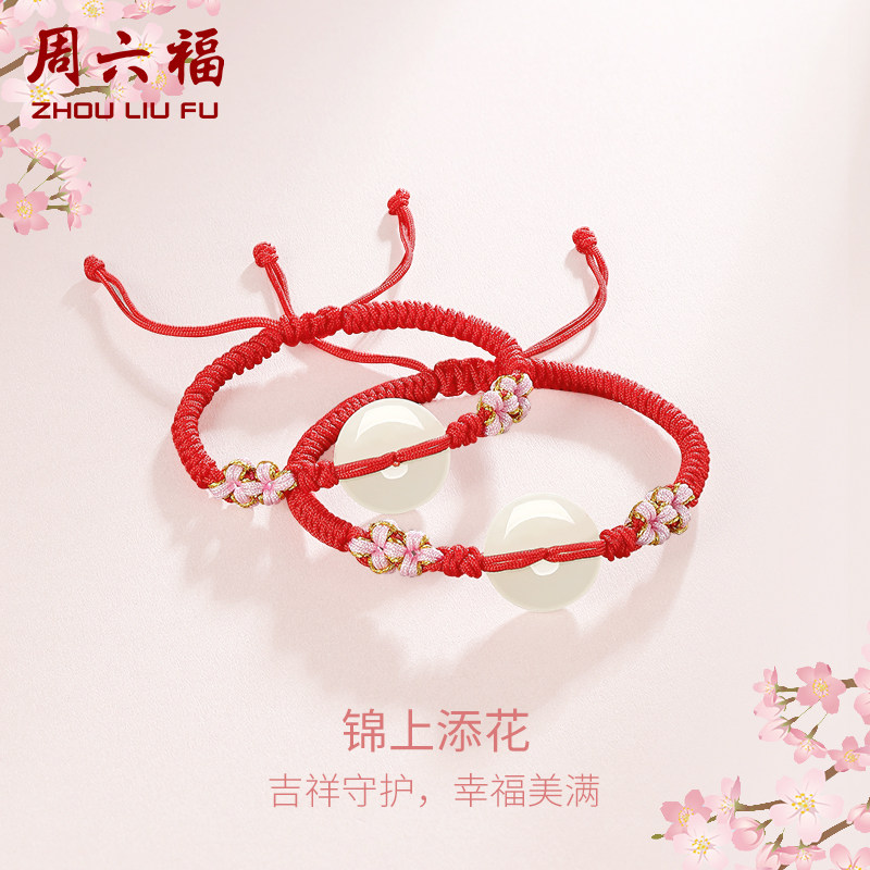 周六福和田玉手绳平安扣手链红绳白玉亲子款官方旗舰店情人节礼物