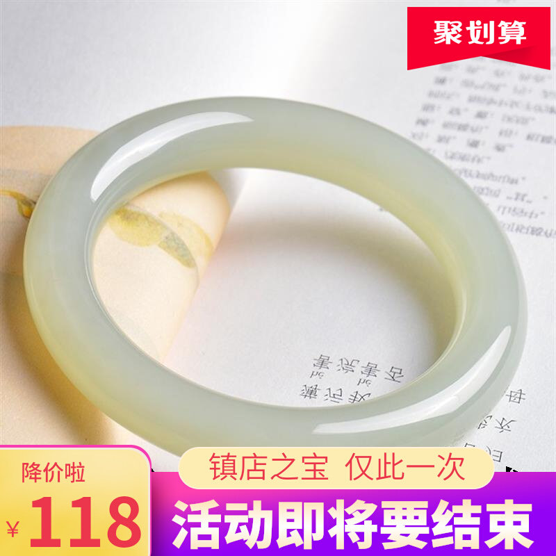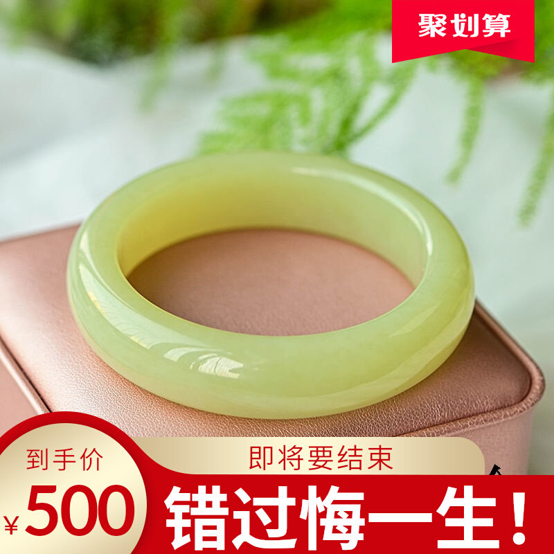 天然正品新疆金丝玉手镯羊脂级玉镯A货玉镯子女款白月光白玉手镯