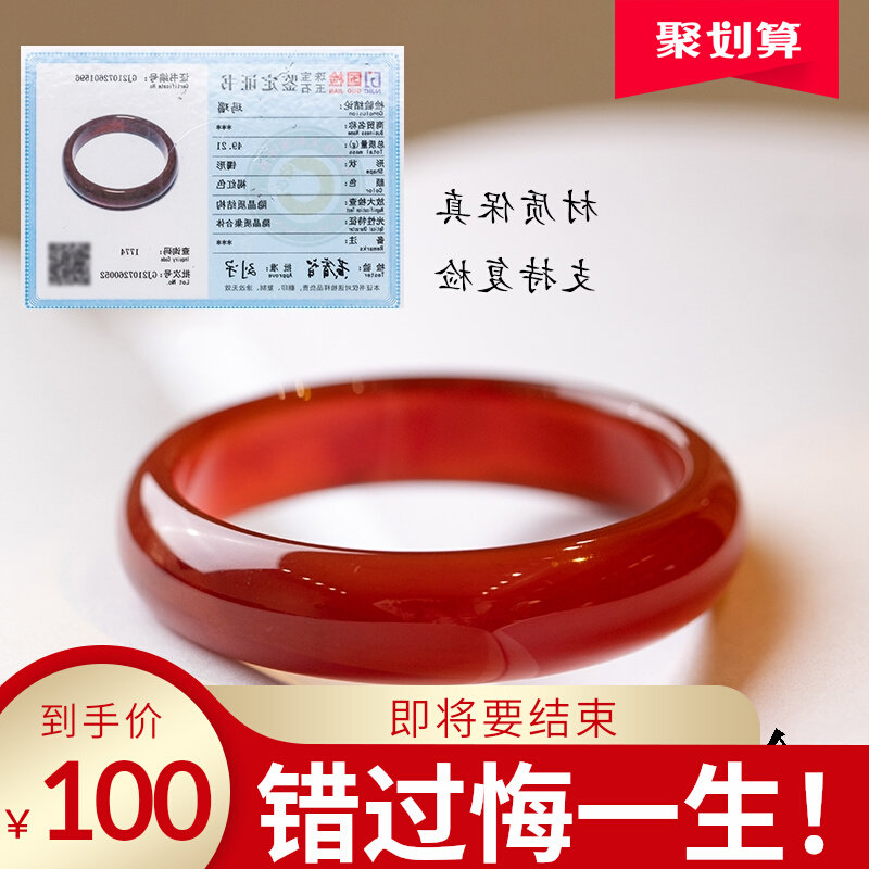 纯天然正品玉镯子红玛瑙手镯女款加宽版窄版红色旺夫真玉手饰证书