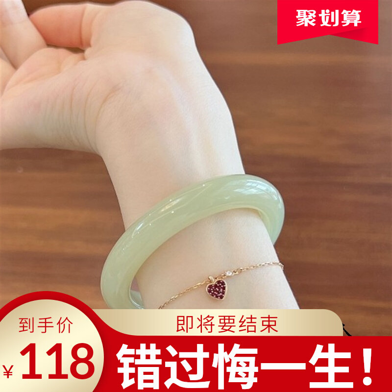 超值推荐 天然和田玉青玉冰晴水叮当手镯 女款玉镯玉石饰品礼物