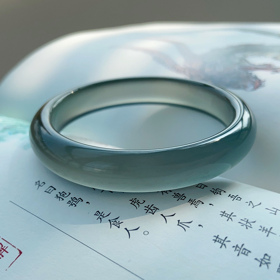 { 只此青绿 }天然玛瑙扁条手镯 文艺清新油青色镯子 玉镯