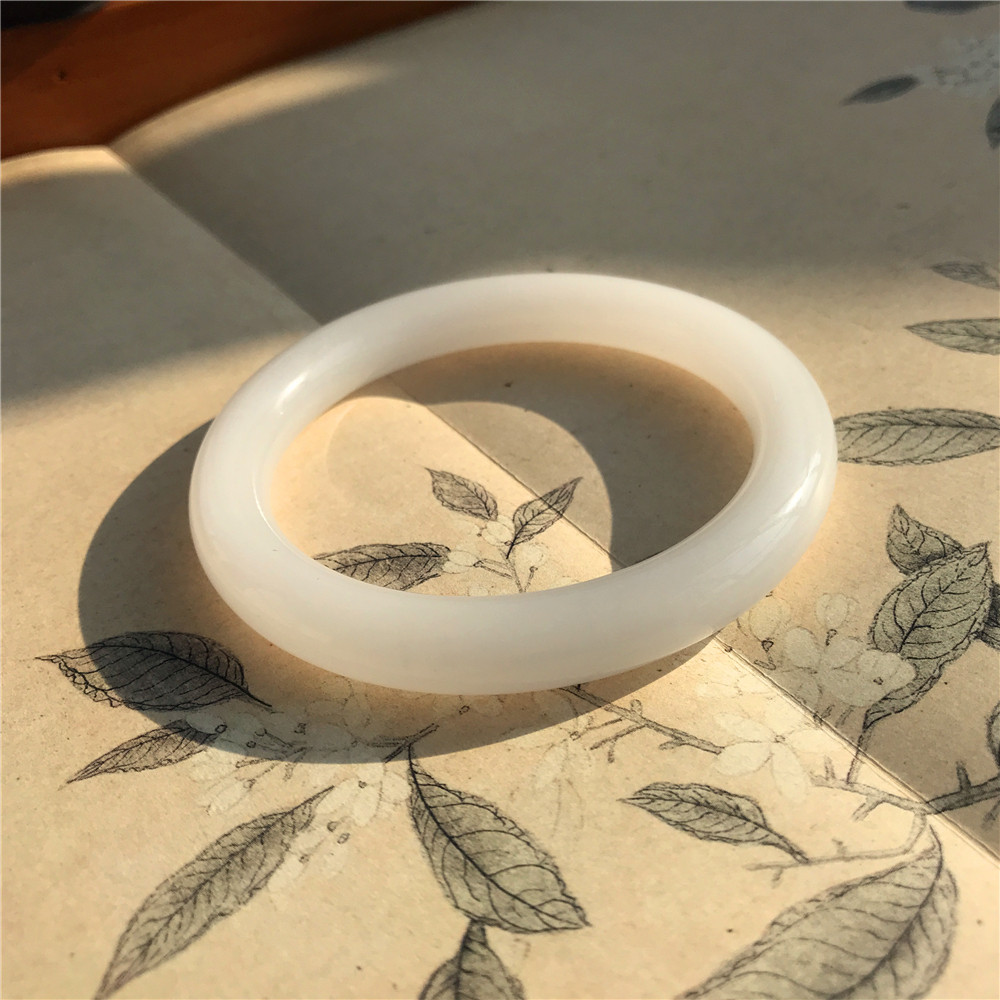 玉说和田玉手镯女青白玉镯子晴水色玉石小宽条扁圆条平安镯附证书