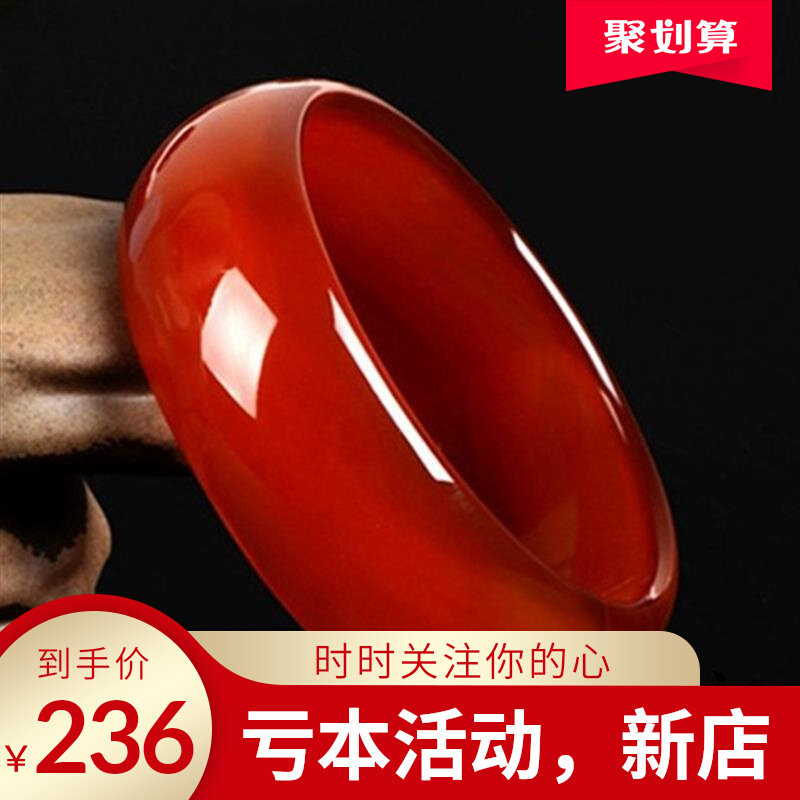 高档纯天然巴西红玛瑙手镯女加宽版加厚红色旺夫真玉镯子精品玉髓
