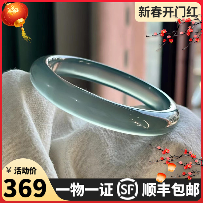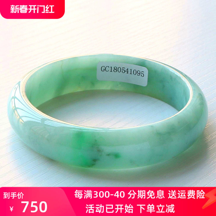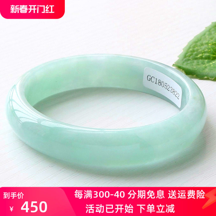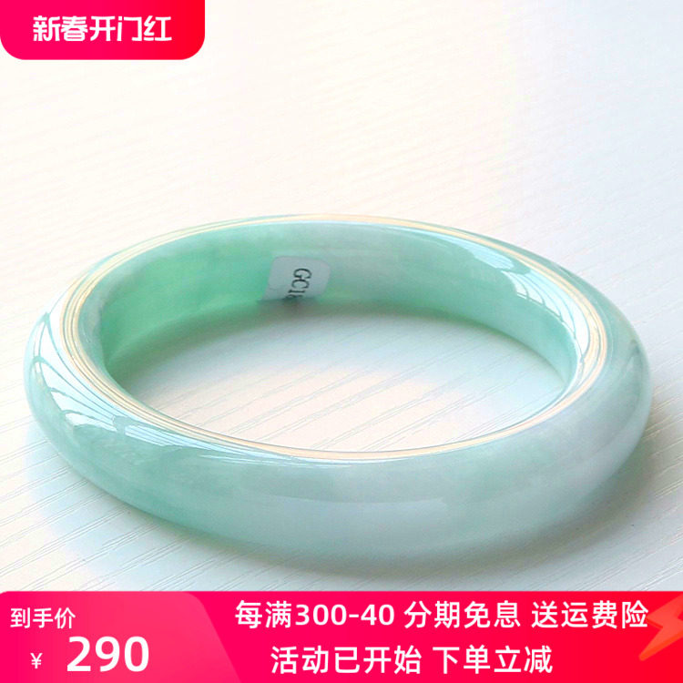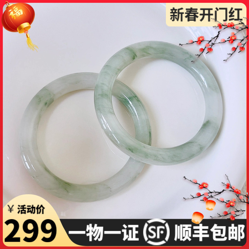 天然缅甸a货真玉手镯子翡翠色玉镯少女浅绿飘花带证书旺夫妈妈款