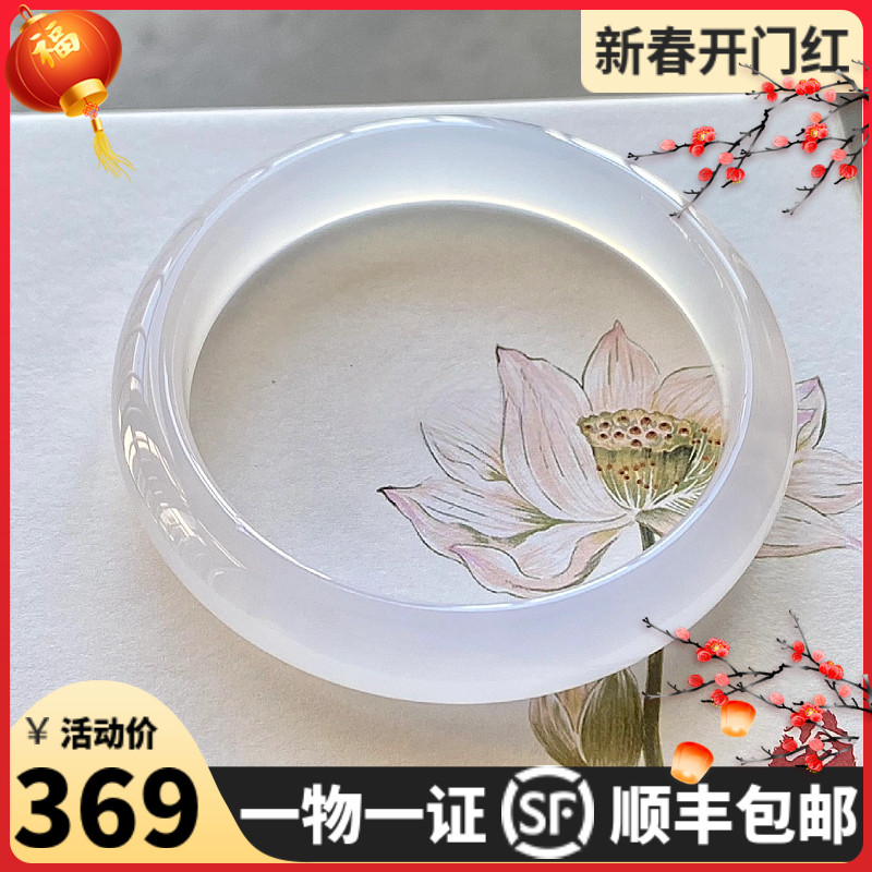 白月光荔枝冻纯天然玛瑙手镯女款招财镯冰种玉镯子高冰透玉髓白色