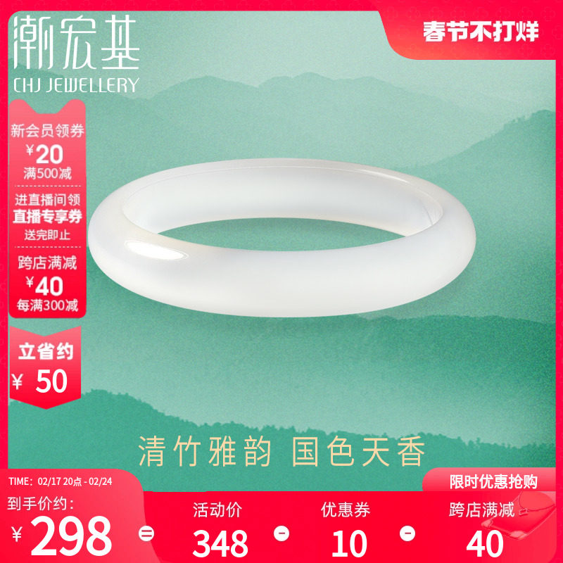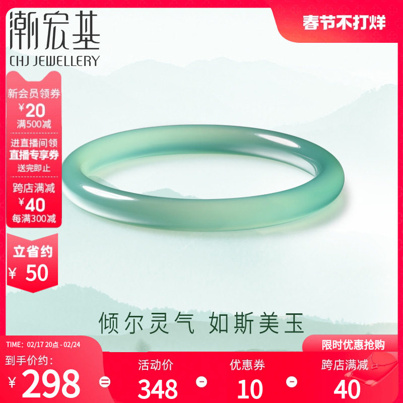 潮宏基倾玉玉髓手镯玉镯镯子手饰简约国风典雅礼物简约时尚送妈妈