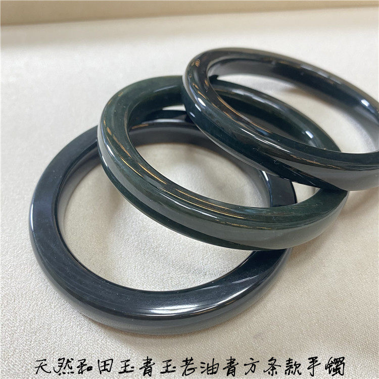 超值天然新疆老料和田玉青玉老油青方条款手镯 女款玉镯饰品礼物A