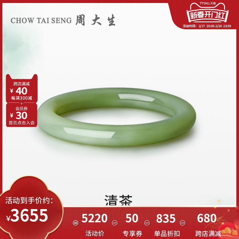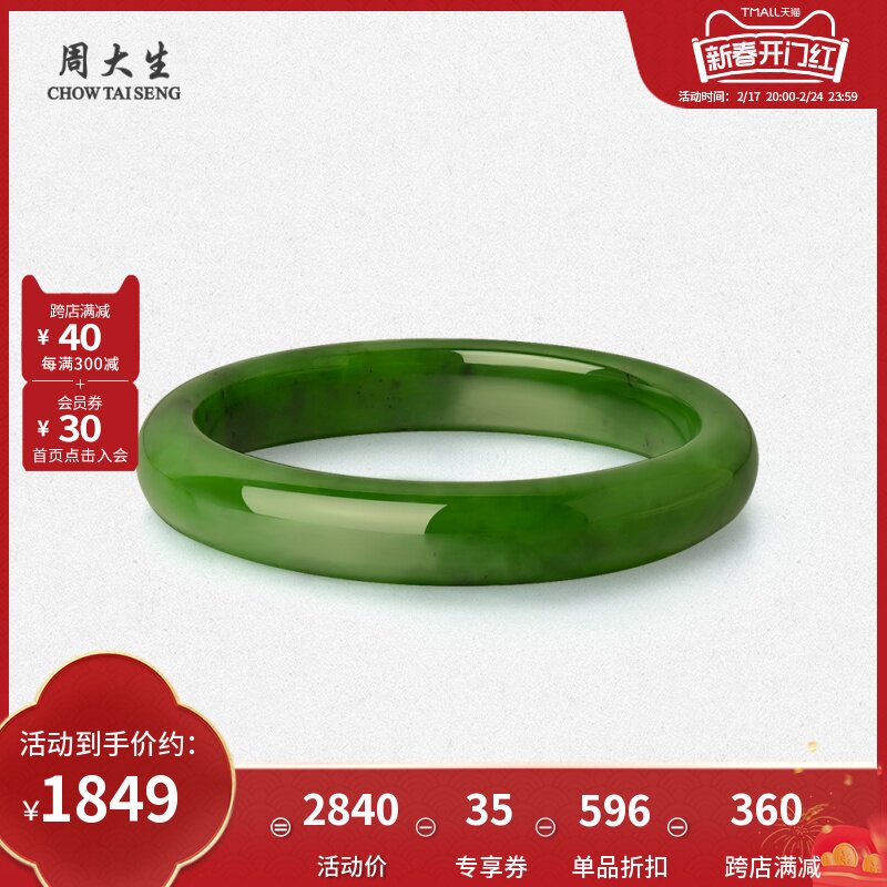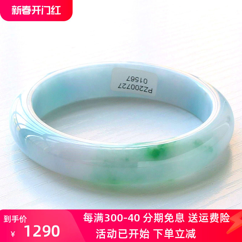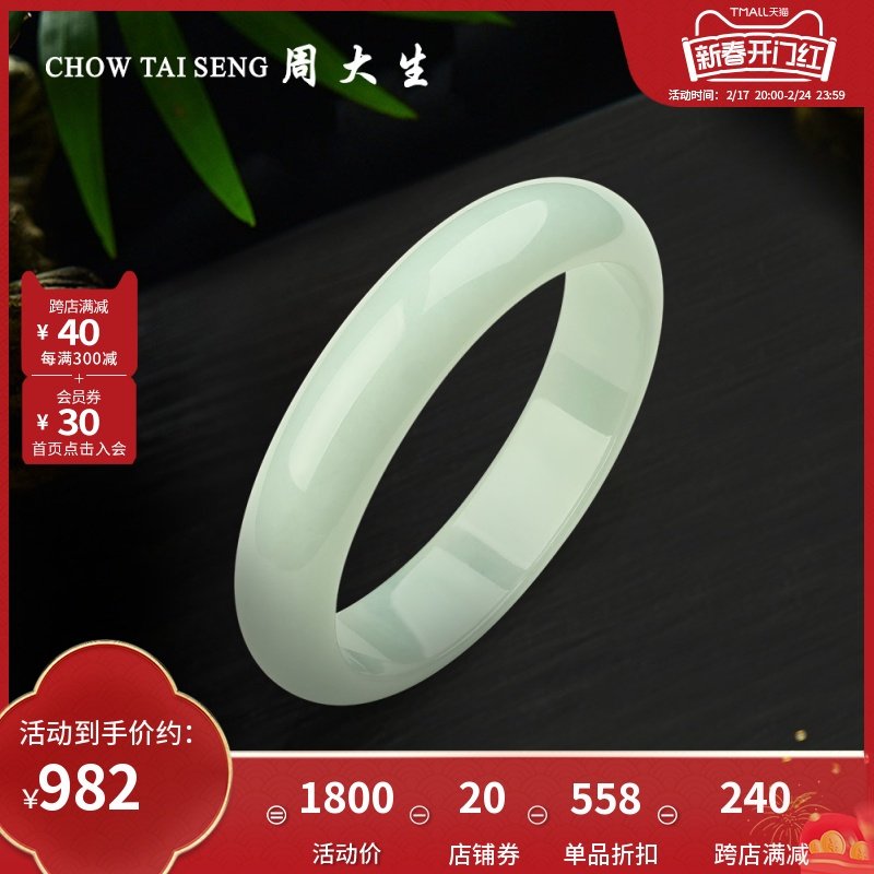 周大生天然正品翡翠手镯豆种白底平安镯女玉镯子送妈妈送女友礼物