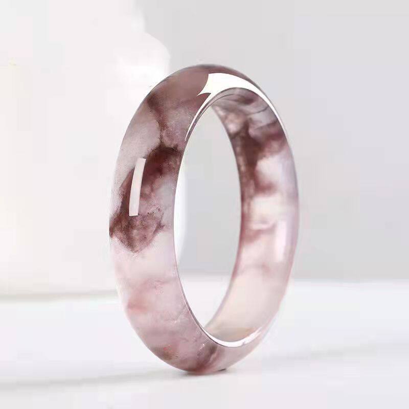 天然玛瑙手镯女款冰飘紫冰种玉镯子紫罗兰高冰透淡紫色玉髓非翡翠