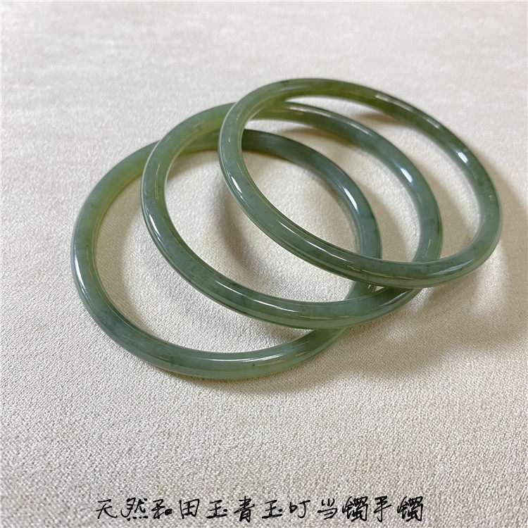 天然青海料湖水绿和田玉青玉叮当手镯 女款玉镯玉石饰品礼物