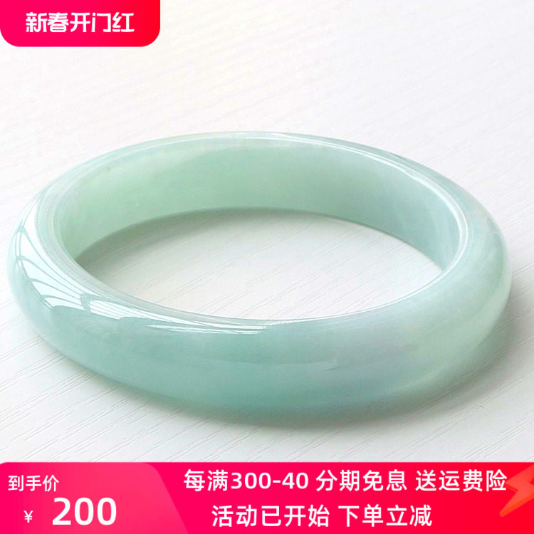 高冰种真玉手镯子少女翡翠色冰种妈妈款旺夫女款缅甸天然浅绿玉镯