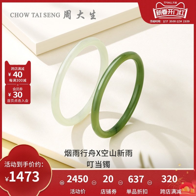 周大生和田白玉手镯女款叮当镯子双镯叠戴显白玉镯送妈妈女友礼物