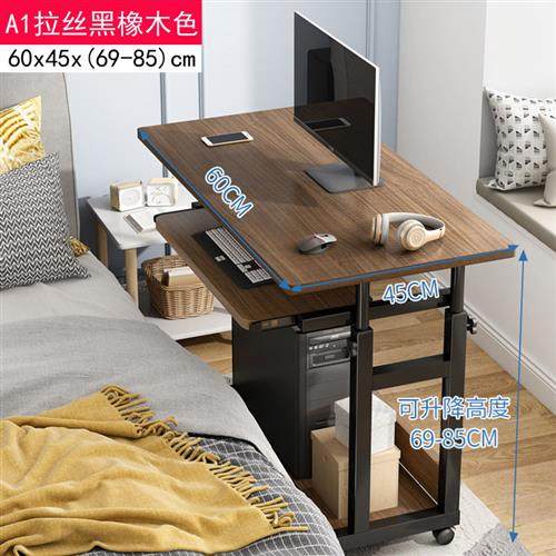 新品升降电脑台式桌家用可移动笔记本牀边桌小型办公桌经济型带键